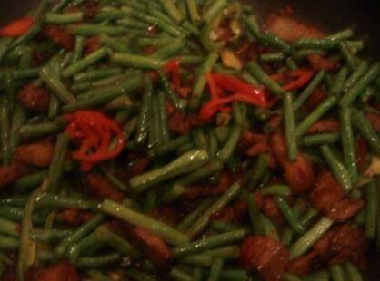 最佳答案腊肉50g、豇豆一把、红尖椒50g、食盐适量、酱油适量、调和油适量。1、豇豆角洗干净,切成段。青辣椒和红辣椒切成段。2、腊肉切成条。点火,锅中放入豆油,放入腊肉。3、加入水,酱油,炖5分钟。4、然后放入豇豆角和辣椒,大火炒5分钟左右,加入盐,翻炒几下出锅。