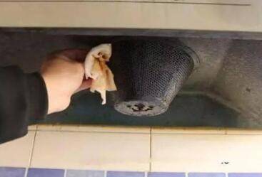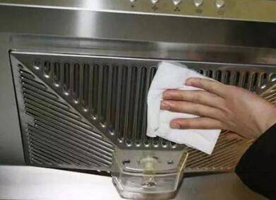 2、然后先把油烟机的污渍残渣用毛巾简单擦拭一下。