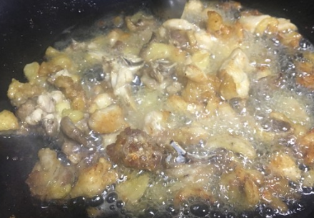 倒入鸡肉,慢炸;