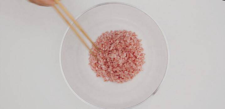 1、猪肉糜打散。