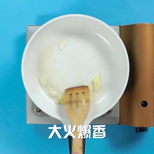 2、锅中倒入食用油、蒜、姜、花椒,大火爆香。