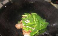 将蒜苗和灌肠炒匀,等蒜苗炒至断青,沿锅边溜点清水,加一点盐、生抽调味即可。