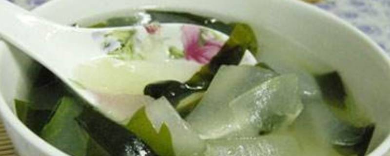 2、降脂减肥:冬瓜中脂肪含量较低,还含有丙醇二酸等成分,能避免糖类转化成脂肪,可以减少体内多余脂肪的堆积,而海带中含有大量的纤维素及不饱和脂肪酸,能减少血管中胆固醇的含量,还能刺激胃液的分泌,加速食物消化,常喝冬瓜海带汤有利于减肥。