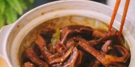 最佳答案准备食材:鸭掌、鸭翅、鸭腿、花椒、冰糖、料酒、老抽。将鸭货洗干净后凉水下锅焯水;焯好的鸭货放锅里,放入生姜、料酒、老抽、生抽;把所有的调料都放进去,再放一小勺盐;倒没过鸭货的热水,盖盖小火闷煮;汤汁变的粘稠就可以开盖收汁出锅了。