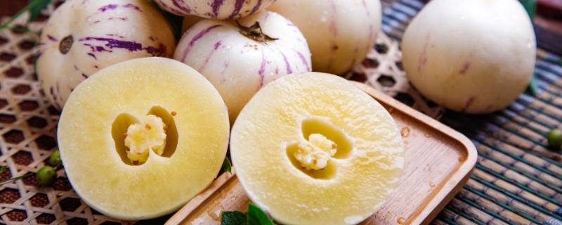 成熟的人参果果皮为金色或者奶白色,部分果实上带有紫红色的条纹,果肉多汁鲜嫩,重量增加,手感偏沉,完全成熟时果肉会变软,香味浓烈。未成熟的果肉一般是白色,基本没有香味。