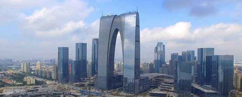 江苏省苏州市。东方之门位于江苏省苏州市工业园区星港街199号,地处苏州工业园区CBD轴线的东端,东临星港街及金鸡湖,西面为园区管委会大楼及世纪金融大厦,南面为小河,北侧为城市绿带和城市道路。东方之门总基地面积为24319平方米,总建筑面积(包括地下部分)为453141.79平方米。其中,地上建筑面积336680.71平方米,地下建筑面积为116461.08平方米。东方之门获“中国结构最复杂的超高层建筑”;“中国最高无边际泳池”;“中国最高的过街天河”;“中国最高的空中苏式园林”等荣誉。