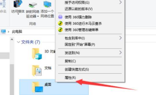 三、然后,右键点击“桌面”在右键菜单中选择“属性”。