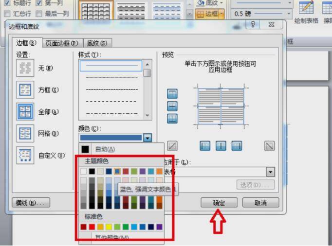 5、完成以上设置后,即可修改word文档中表格的线条颜色。