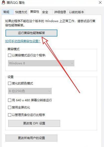在打开的兼容性窗口中点击“运行兼容性疑难解答”的按钮。