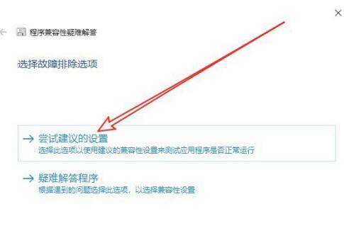 这时就会打开程序兼容性疑难解答的窗口,在窗口中点击“尝试建议的设置”快捷链接。