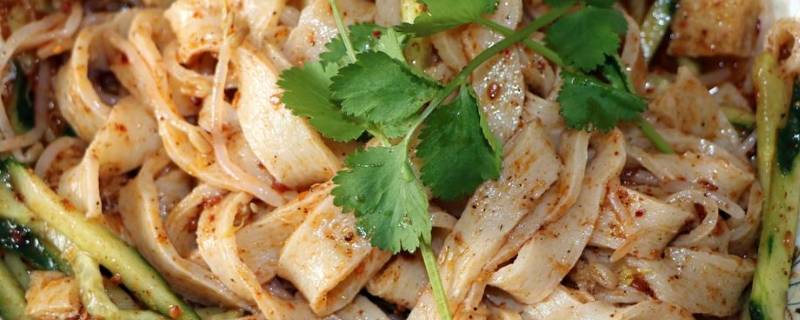 7、擀面皮:是很多当地人的美食记忆,爽滑劲道的面皮加上面筋、豆芽、黄瓜、酱料等,口感丰富,酸辣开胃,让人食欲大增。独特的滋味在味蕾上跳动,让人神清气爽,十分值得品味。