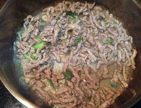 3、牛肉炒干水分,略出油放入老抽。