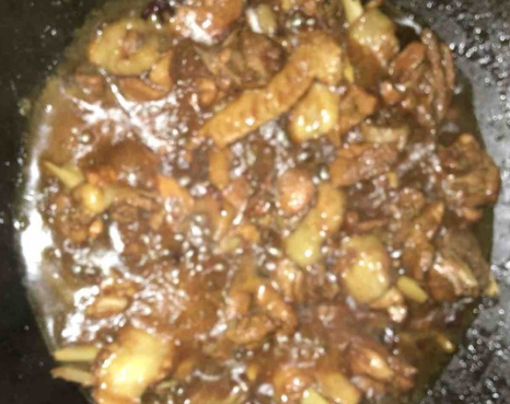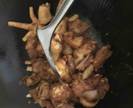 加水至没过鸡肉,大火炖5分钟,加入适量老抽、盐、糖,转小火炖至汤快收干,加少量味精即可出锅。
