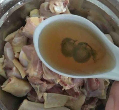 2勺料酒、2勺老抽、1勺蚝油、2勺六月鲜、1勺醋(鸡肉可以变嫩),腌制半个小时;