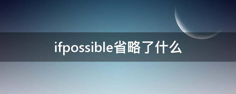 最佳答案ifpossible省略了it is。ifpossible是if it is possible的省略形式,意为如果可能的话,这种省略主语和be动词的用法在英语中很常见,是一种简洁的表达法。英语是一种西日耳曼语支,最早被中世纪的英国使用,并因其广阔的殖民地,而成为世界使用面积最广的语言。英国人的祖先盎格鲁部落是后来迁移到...