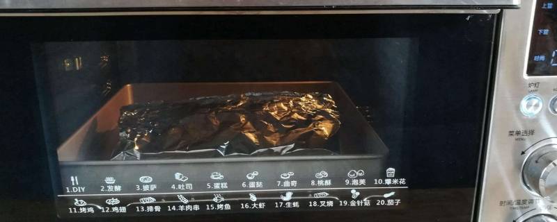 4、使用锡纸的目的,一是便于烤盘的清洁,而是便于食物更快受热。