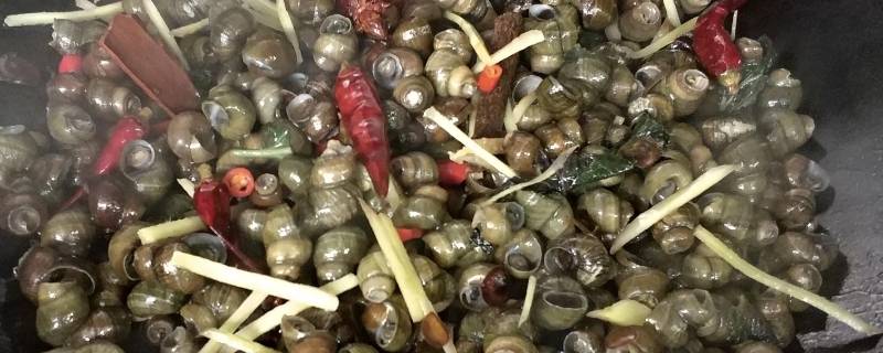 5、炒5分钟后,放两勺老抽,盐(炒菜的两倍,要不不入味),老抽滚了后加开水,漫过螺丝,盖锅盖焖。