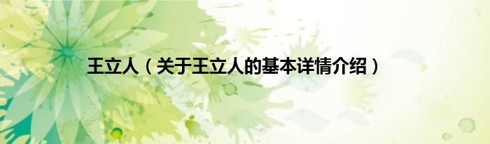 本文关于王立人的基本详情介绍就讲解完毕,希望对大家有所帮助。