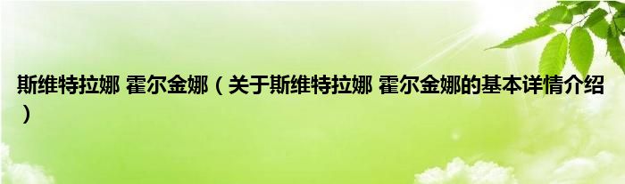 本文关于斯维特拉娜 霍尔金娜的基本详情介绍就讲解完毕,希望对大家有所帮助。