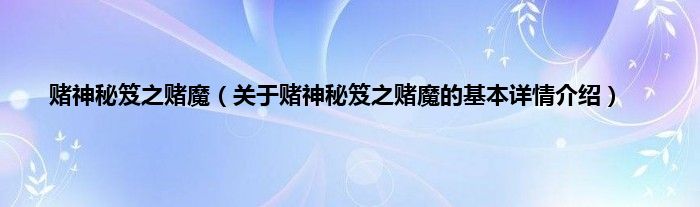 本文关于赌神秘笈之赌魔的基本详情介绍就讲解完毕,希望对大家有所帮助。