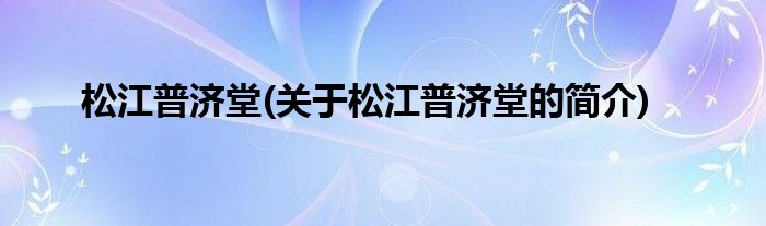 大家好,松江普济堂,关于松江普济堂的简介很多人还不知道,现在让我们一起来看看吧!