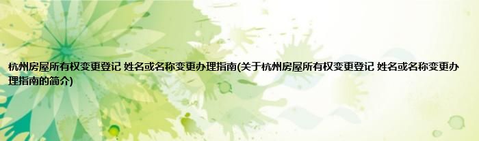 本文关于杭州房屋所有权变更登记 姓名或名称变更办理指南的简介就讲解完毕,希望对大家有所帮助。