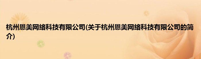 本文关于杭州恩美网络科技有限公司的简介就讲解完毕,希望对大家有所帮助。