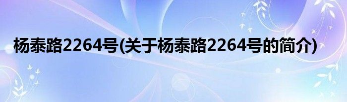 杨泰路2264号(关于杨泰路2264号的简介)