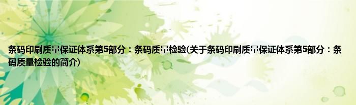 条码印刷质量保证体系第5部分:条码质量检验(关于条码印刷质量保证体系第5部分:条码质量检验的简介)