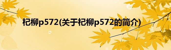 本文关于杞柳p572的简介就讲解完毕,希望对大家有所帮助。