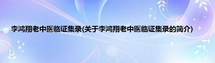 本文关于李鸿翔老中医临证集录的简介就讲解完毕,希望对大家有所帮助。