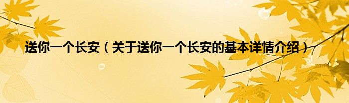 本文关于送你一个长安的基本详情介绍就讲解完毕,希望对大家有所帮助。