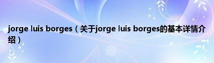 本文关于jorge luis borges的基本详情介绍就讲解完毕,希望对大家有所帮助。