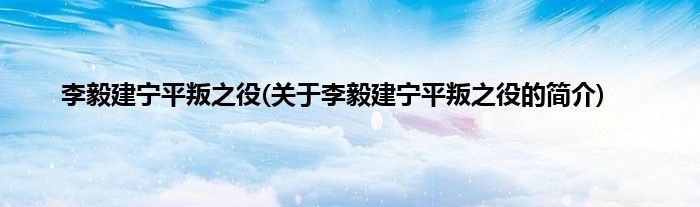 大家好,李毅建宁平叛之役,关于李毅建宁平叛之役的简介很多人还不知道,现在让我们一起来看看吧!