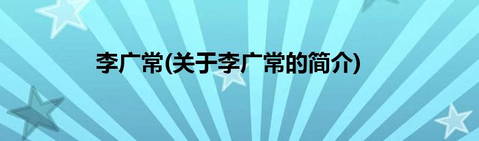 大家好,李广常,关于李广常的简介很多人还不知道,现在让我们一起来看看吧!