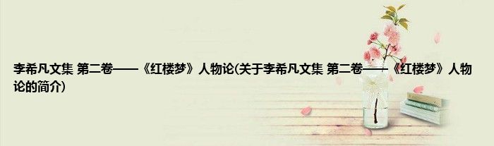大家好,李希凡文集 第二卷——《红楼梦》人物论,关于李希凡文集 第二卷——《红楼梦》人物论的简介很多人还不知道,现在让我们一起来看看吧!