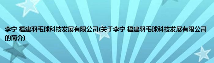 李宁 福建羽毛球科技发展有限公司(关于李宁 福建羽毛球科技发展有限公司的简介)