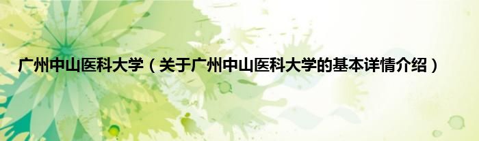 本文关于广州中山医科大学的基本详情介绍就讲解完毕,希望对大家有所帮助。
