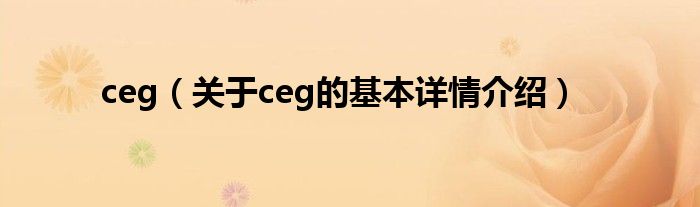 本文关于ceg的基本详情介绍就讲解完毕,希望对大家有所帮助。