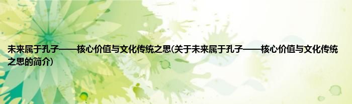 本文关于未来属于孔子——核心价值与文化传统之思的简介就讲解完毕,希望对大家有所帮助。