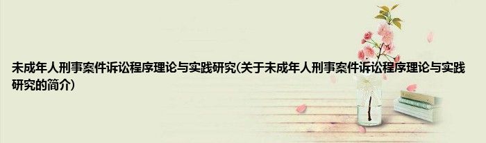 本文关于未成年人刑事案件诉讼程序理论与实践研究的简介就讲解完毕,希望对大家有所帮助。