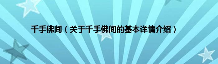本文关于千手佛间的基本详情介绍就讲解完毕,希望对大家有所帮助。