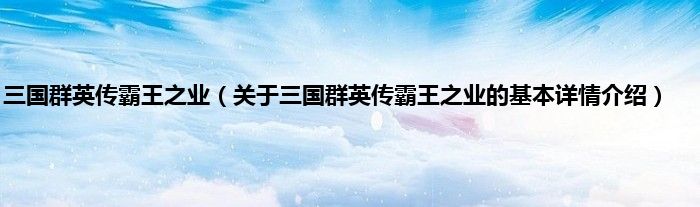 本文关于三国群英传霸王之业的基本详情介绍就讲解完毕,希望对大家有所帮助。