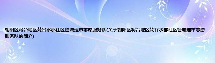 朝阳区将台地区梵谷水郡社区管城理市志愿服务队(关于朝阳区将台地区梵谷水郡社区管城...
