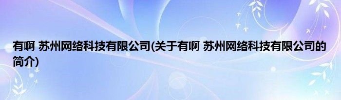 大家好,有啊 苏州网络科技有限公司,关于有啊 苏州网络科技有限公司的简介很多人还不知道,现在让我们一起来看看吧!