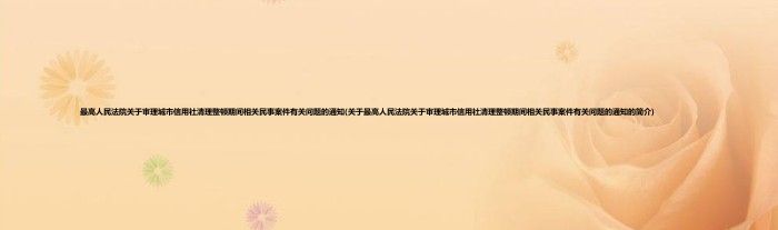 最高人民法院关于审理城市信用社清理整顿期间相关民事案件有关问题的通知(关于最高人民法院关于审理城市信用社清理整顿期间相关民事案件有关问题的通知的简介)