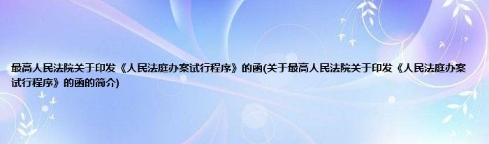 大家好,最高人民法院关于印发《人民法庭办案试行程序》的函,关于最高人民法院关于印发《人民法庭办案试行程序》的函的简介很多人还不知道,现在让我们一起来看看吧!