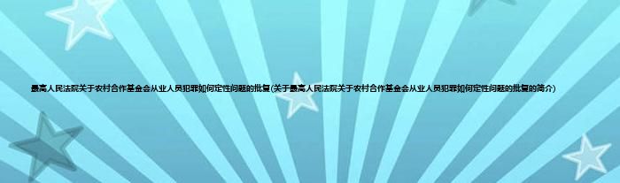 本文关于最高人民法院关于农村合作基金会从业人员犯罪如何定性问题的批复的简介就讲解完毕,希望对大家有所帮助。