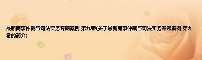 本文关于最新商事仲裁与司法实务专题案例 第九卷的简介就讲解完毕,希望对大家有所帮助。