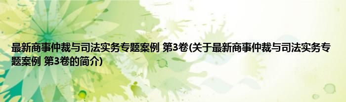1、 《最新商事仲裁与司法实务专题案例(第3卷)》是由出版社出版的一部教育作品。